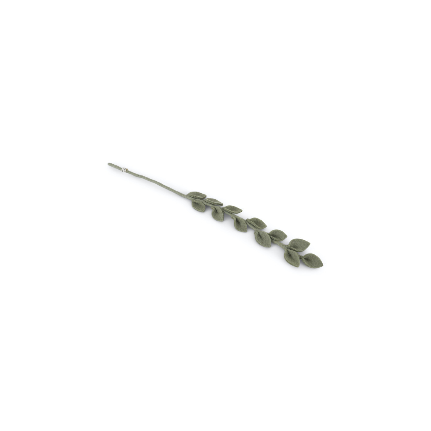 Longue branche en laine avec feuilles coloris vert grisé doux de chez Gry & Sif. 100% pure laine naturelle de Nouvelle Zélande, fait à la main au Népal. Pour composer un bouquet poétique et impérissable qui enchantera votre intérieur. Longueur 50cm.