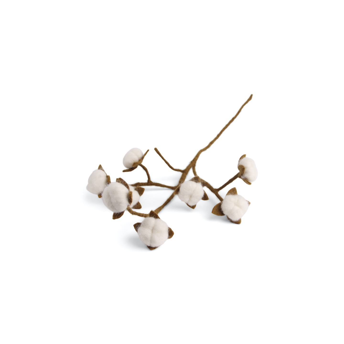 Grande branche de fleurs de coton en laine. 100% pure laine naturelle de Nouvelle Zélande, fait à la main au Népal. Pour composer un bouquet poétique et impérissable qui enchantera votre intérieur. Longueur 60cm.