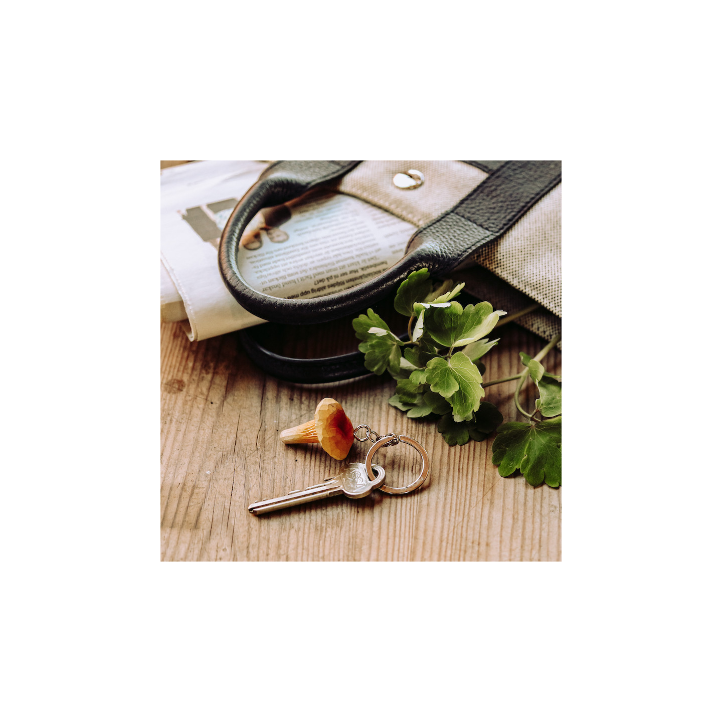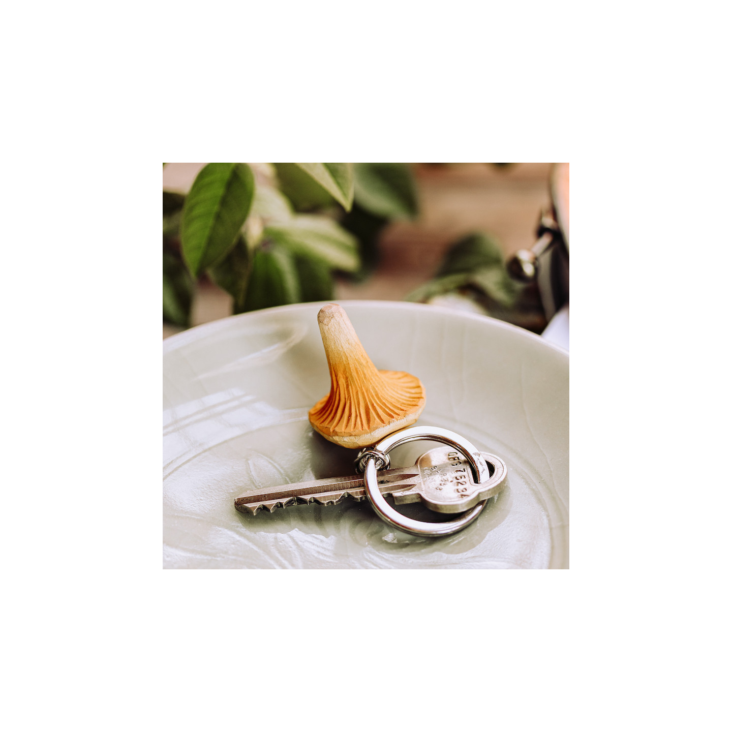 Porte-clé girolle : en bois sculpté à la main et peint avec des peintures écologiques. Un très joli porte-clé qui invite la nature jusque sur vos clés !